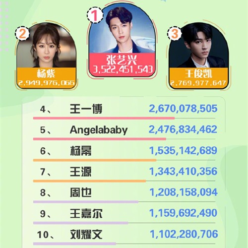 综艺嘉宾影响力榜:易烊千玺力压鹿晗夺冠,张艺兴稳居前五