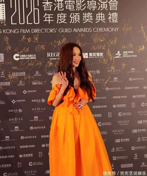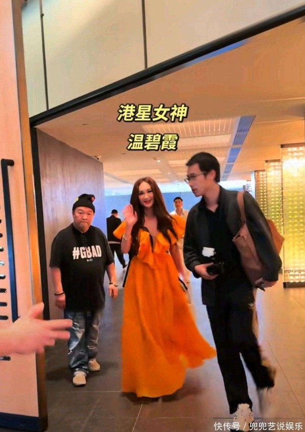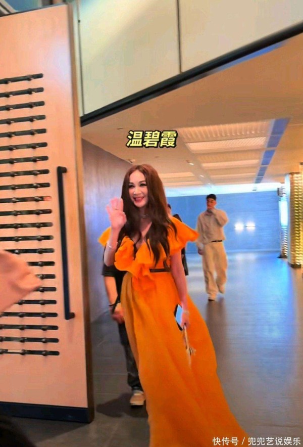镜头中的温碧霞,身穿一袭亮眼的亮黄色长裙,犹如盛开的向日葵,明艳照人。一进入会场,她便频频向观众和镜头挥手致意,举止优雅,亲和力十足,整个人的气质既大方又充满活力。她的冻龄魅力依旧不减,肌肤紧致、容光焕发,岁月仿佛在她身上停滞。那条设计精巧的礼服,深V领口与荷叶肩的搭配,将她优美的肩颈线条展露无遗,天鹅般的脖颈与精致的锁骨,尽显女性的柔美与妩媚。
