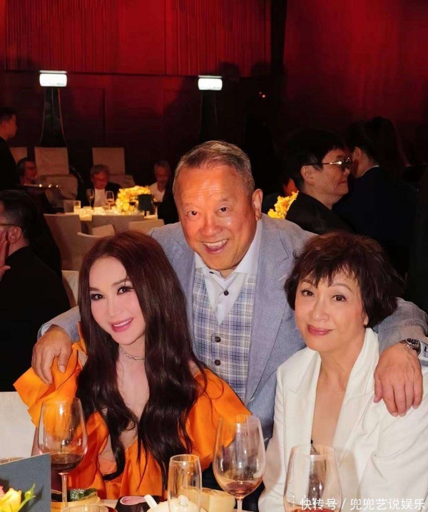 紧接着,温碧霞与曾志伟的合影也同样令人注目。照片中,温碧霞优雅地坐在桌旁,旁边站着一位白衣友人,曾志伟则站在他们身后,手臂自然地搭在两人肩上,三人笑容灿烂,氛围轻松愉快。当天,曾志伟身着浅蓝色西装外套,内搭格纹马甲与白衬衫,穿着得体且精致,整个人的精神面貌也焕发得比荧幕上更为年轻,气场不失威严却又亲和十足。