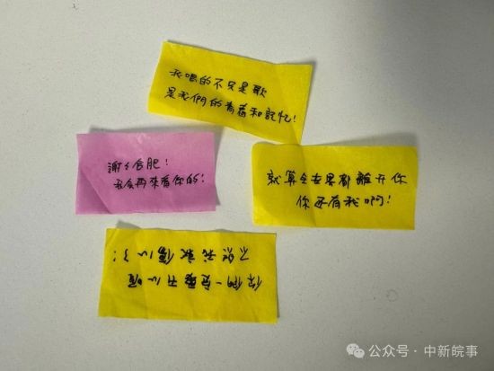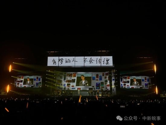 “谢谢合肥!我会再来看你的!”“你们一定要开心喔,不然我就伤心了!”“就算是全世界都离开你,你还有我啊!”……带着众多心里话的纸片,随着任贤齐的“谢谢”“晚安”“路上注意安全”的句句叮咛中应声落下,全场暖意融融。