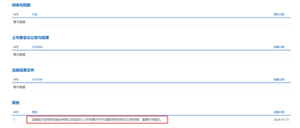 2026年3月的最后一天,上海证券交易所的审核动态更新,为火热的商业航天赛道投下了一枚“暂停键”。
