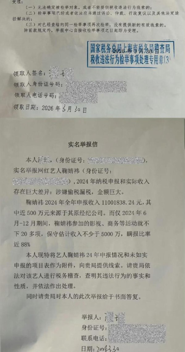 2026年3月31日,丝芭传媒公开指控鞠婧祎涉及偷税行为,并指出她在2024年的申报收入为1100万元与实际的活动收入5000万元之间存在显著的不符,隐瞒的比例高达88%,相关机构已经开始接受这一举报并进行审查。