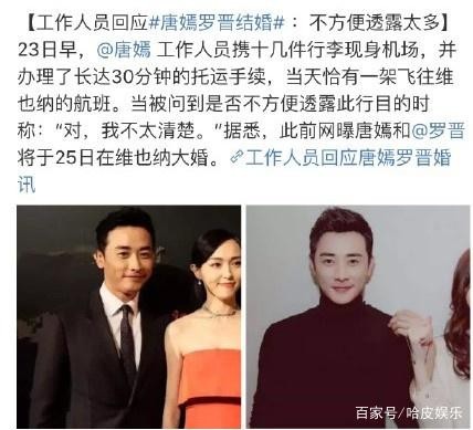 唐嫣罗晋28日维也纳低调办婚礼 只小范围邀请亲友