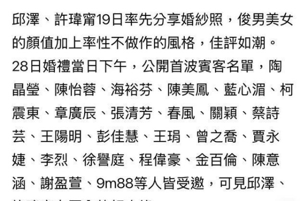 邱泽许玮甯婚礼现场:高定婚纱与僵硬笑容下的明星婚姻真相婚礼盛况:邱泽许玮甯幸福时刻与明星时尚