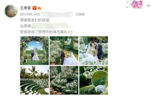 王彦霖晒婚礼现场的照片,感谢朋友的祝福,黄渤和陈立农在列