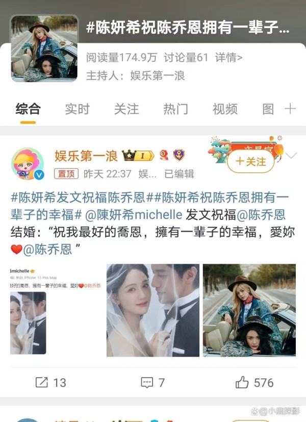 一些网友表示,陈妍希在祝福语中特意强调了“一辈子”,这似乎是在暗示着什么。有网友猜测,陈妍希可能是想到了自己和陈晓的婚姻,对于“一辈子”的承诺有着更深的感触。还有网友则回忆起陈妍希和陈晓曾经的婚纱吻名场面,感叹那段美好的时光。