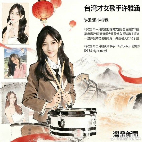 (台北讯)近期,身为「春晚星推官」的台湾创作歌手/音乐制作人「许雅涵」凭藉「许雅涵湾湾新闻」专栏与官方媒体深度合作,由许雅涵/Ay7主唱(0588right脑)主题曲,推出跨国多频道春晚系列及台湾演艺圈名人报导,每期内容均强势登顶热搜。