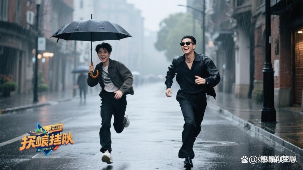 更绝的是,王嘉尔根本不按套路出牌!可能是被严浩翔的热情吓到,愣是玩起了“你追我逃”的游戏。他故意加快脚步,左闪右避,时不时还回头冲严浩翔挑眉坏笑;严浩翔则举着伞在后面紧追不舍,186cm的大高个,追得气喘吁吁,却怎么也不肯放弃。这画面,像极了校园里调皮学长逗小学弟,活生生把户外录制变成了搞笑追逃剧。最后还是导演组看不下去,喊了暂停,两人才笑着停了下来,严浩翔举着伞站在王嘉尔身边,嘴角的笑意怎么都藏不住,王嘉尔则拍了拍他的肩膀,那互动简直不要太甜!