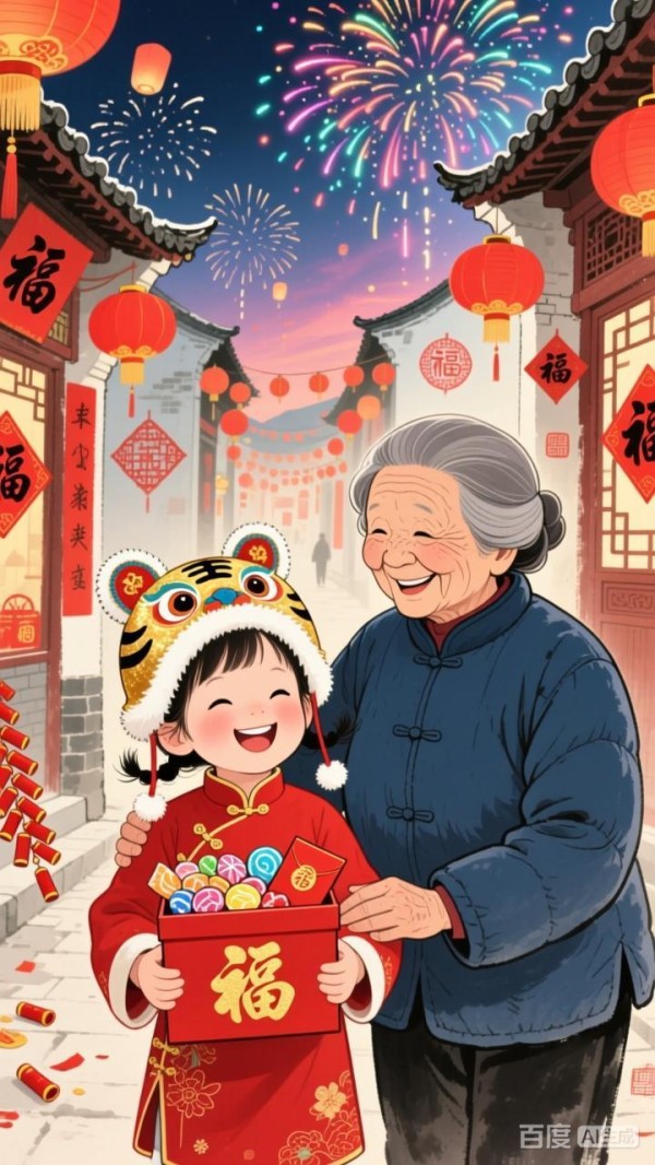 祖孙共迎新春,福满乐无边!