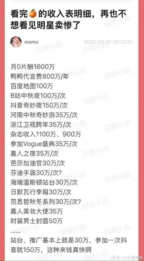 网友对明星收入之高反应很真实,很多人感到羡慕。