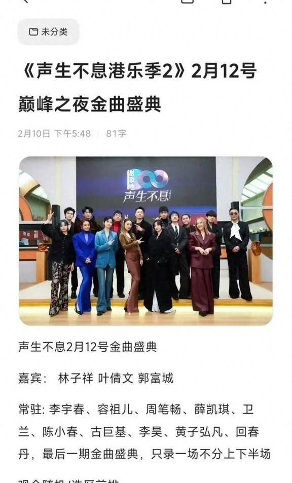 曾志伟大老板说了,最后一集《声生不息》要请六位选手来表演,他自己也要亲自上台呢!