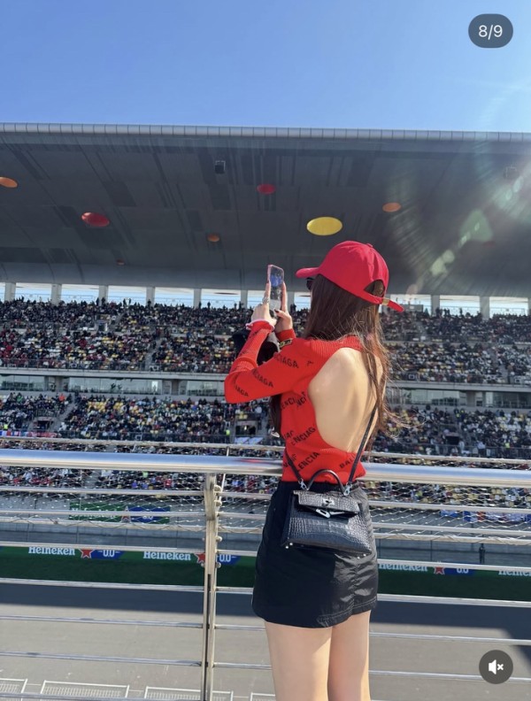 林心儿以一身大红色的露背装示人,帽子是红色的,毛衣是红色的,在这人群中很难不抢镜,除了看赛车,她还与一众前往观看F1赛事的香港富二代同框。从她晒出的合照可见,原来何鸿燊四房儿子何猷亨,刘銮鸿的儿子刘金晨也在场。合照中,林心儿抓手机自拍,她站在最前排,一身大红色喜庆又耀眼,何猷亨站在其身后,身穿白色的卫衣,戴了帽子,打扮低调,站在何猷亨身后,戴着墨镜很有型的是刘金晨。