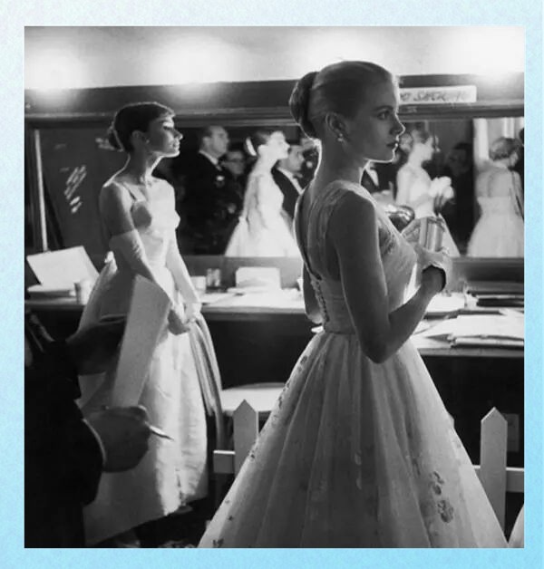 这张珍贵的合照,捕捉了1956年奥斯卡颁奖典礼后台的温馨一幕。奥黛丽·赫本与格蕾丝·凯莉,两位绝代佳人正在为即将到来的盛会做着细致的准备。格蕾丝·凯莉的优雅气质与时尚品味相得益彰,而奥黛丽·赫本则宛如坠入人间的天使,清纯可人。
