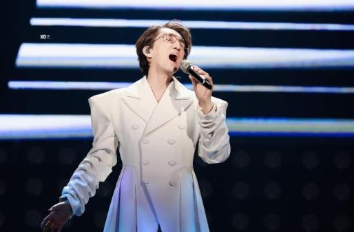 盛典一开始,令人眼前一亮的非“老少配”组合——梁龙与早安莫属。二手玫瑰主唱梁龙一身白色西装亮相,与他惯常的浮夸摇滚形象比起来,多了一份难得的沉静气质。而新生代的早安则干净清爽,像一阵融化了观众的和煦清风。一个成熟老练、一个青春洋溢,两位形成了完美的视觉对比,好似一道“麻辣对撞甜”的大餐,浓烈与清新的碰撞让这对组合成为全场焦点。这不禁让人想起梁龙被问及“搭档年轻人是否压力大”时,他笑着说:“压力就是动力啊,不和年轻人合作,怎么保持灵感呢?”他这一句温暖的调侃展现了老一辈音乐人对新生代的认可与支持。