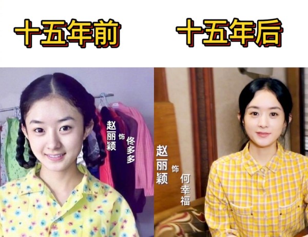 我还看了一网友做的赵丽颖15年前后的对比照:之前是个小丫头,一脸青涩;现在的她,容貌上没有太大的变化,还是跟以前一样漂亮,但是眼神里多的是成熟和坚定,她,成长了很多。