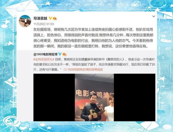 他曾自曝导演要求他迅速瘦身30斤。由于采用断食疗法减肥,时间紧迫,黄晓明坦言现在经常肠胃不适,偶尔还会出现心悸等症状。此外,该剧导演董越在社交平台上透露,黄晓明为了新剧的拍摄而节食,多次在剧场虚弱地趴在道具上,让他深感心疼与难过。