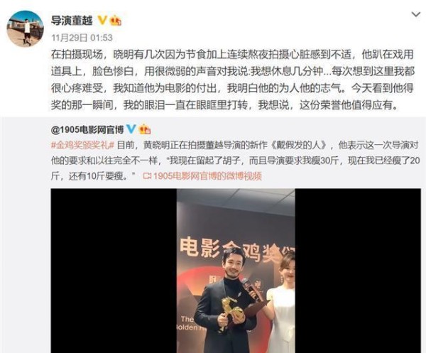 该剧的导演董越也曾在社交平台上透露,黄晓明为了新剧节食,好几次都虚弱地趴在剧场的道具上面,让他看了很心疼难受。