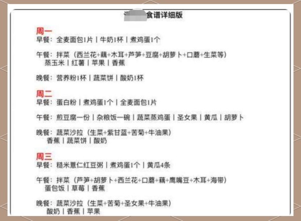 因此,这份缺乏蛋白质的食谱显得极为不科学。还有一份备受关注的食谱,其创作者是一位知名女星,据说曾因身材苗条而上过热搜。然而,从科学角度看,这份食谱同样存在诸多问题。若这位女星真的接受过专业的营养指导,她绝不会采用这样的饮食方式。