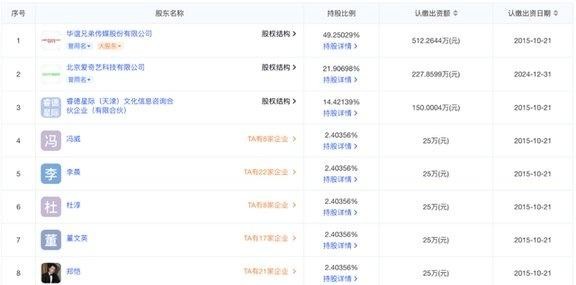 更让这场“资本局”多了一层话题性的,是《逐玉》背后的另一层股权故事,在浩瀚娱乐的股东名单里,有一批熟悉的明星名字,他们早年通过一笔交易成为公司股东,这笔交易发生在2015年,简单说,就是华谊通过收购、对赌等方式,让部分合作艺人持有子公司股权,从签约艺人变成“自己人”,既绑定合作,也分享后续项目收益,浩瀚娱乐就是在那一轮资本操作中,被设计成一个汇集多位明星的公司。