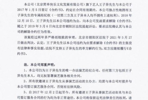 每个人也都觉察到,每一年都会有明星跟原来的经纪公司解约,有些甚至持续瞎折腾两年才能出结果。如前所述,前不久与经纪公司简易游戏娱乐就解约一事纠缠了2年的王子异最终解约未获成功,从经纪公司简易游戏娱乐公布的申明看来,王子异将再一次待在简易游戏娱乐中。这个讯息传出,引起王子异粉丝的强烈不满,因一旦与经纪公司「撕破脸皮」,又无法摆脱,最终肯定无法再获得高质量的资源,甚至可能遭受封。毕竟,王子异当时往往挑出一款简单的游戏来消遣,关键就是被企业盘剥资源,托欠薪金等原因驱使他迫不及待地提到解约决策。