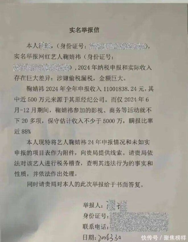 鞠婧祎被实名举报偷税漏税惊天反转!鞠婧祎遭丝芭传媒“偷税”举报背后,竟是一场24小时极限商战?鞠婧祎被举报偷税漏税 税务部门:未发现问题被人举报偷税,鞠婧祎未必凉凉鞠婧祎偷税被举报了!半年时间逃税4500万,疑似严重翻车了被举报偷税漏税,鞠婧祎方公开声明,丝芭传媒最新回应鞠婧祎被实名举报偷税引发热议,疑鞠婧祎收入明细曝光,被指瞒报比率近88%演员鞠婧祎被实名举报偷税漏税!其收入明细被曝光,估算瞒报比率达88%鞠婧祎偷税举报舆情爆发|Infoseek 舆情监测:明星 / 品牌舆情的 “预警防火墙”瞒报近9成收入?鞠婧祎遭实名举报,起底其商业版图