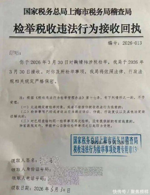 3 月 30 日,上海税务局稽查局出具《检举税收违法行为接收回执》,正式受理举报。次日,充协议,主张双方合约已经延长至2033年,并要求她继续履行独家经纪义务,双方由此彻底对立,矛盾迅速激化。 围绕合约问题,entity[entity协议上的签名并非本人所签,且法院曾两次进行笔迹鉴定,结果均显示无法判定为本人签署,entity[[单方面提供的鉴定意见也未被采信。另一方面,迅速发出声明,全entity[盘否认偷税指控,表示艺人一直依法纳税,配合过税务检查,同时指责entity[渐延伸到舆论场的交锋,矛盾不断累积,公司最终在此次税务举报中集中爆发。