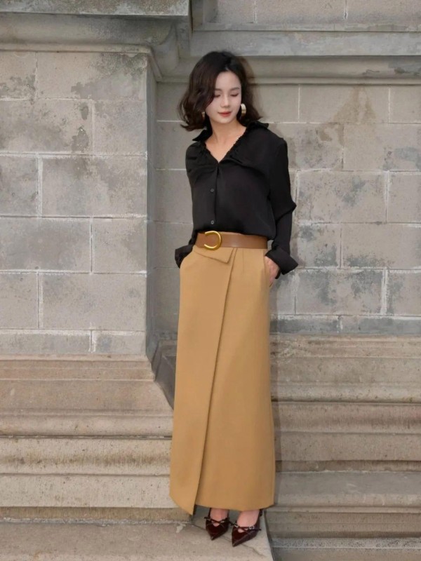 卡其色长裙配白衬衫,那种知性美绝了。春秋天加件牛仔外套,休闲感立刻就有了。想要更时髦?试试皮质马甲,软硬材质的碰撞特别有层次感。开衩设计的长裙里面套长裤,这种看似“不伦不类”的搭配,硬是被一些素人穿出了时髦感。记住,叠穿的精髓在于“藏一半露一半”。
