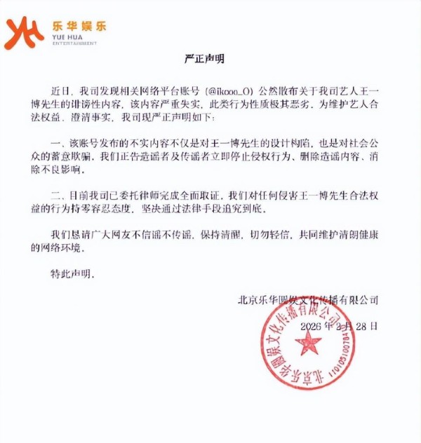 乐华4小时KO谣言!王一博“聊天记录”事件如何上演公关教科书级反杀?乐华娱乐声明王一博聊天记录系恶意构陷已取证追责