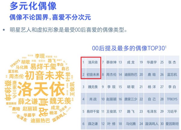 当代年轻人大多是伴随着互联网的发展成长起来的,可以说他们是互联网的“原住民”,乐于主动接触新兴事物,腾讯发布的《2019年00后研究报告》中显示,48%的00后年轻人有自己喜欢的虚拟偶像,时下众多流行偶像中,00后提及最多的是虚拟偶像洛天依与初音未来。虚拟偶像诞生于互联网,这与当代年轻人的成长环境相同,可以说,虚拟偶像更被年轻人认可,容易受到年轻人喜爱,从而对其寄托感情。