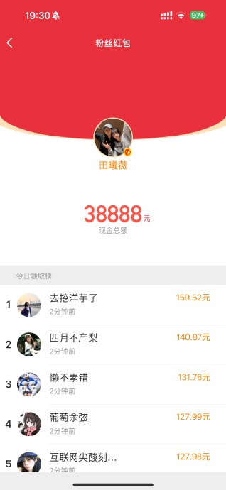 田曦薇此次发放的红包并非简单撒钱,而是通过三档差异化策略覆盖不同群体:
