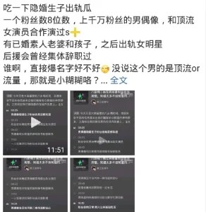 大瓜娱乐圈大瓜!曝当红男明星出轨与女投资人暧昧担心净身出户不离婚震惊!曝千万粉丝男明星隐婚生子还出轨 曾与顶流女星合作多部S+级影视作品 微博粉丝量超八位数!