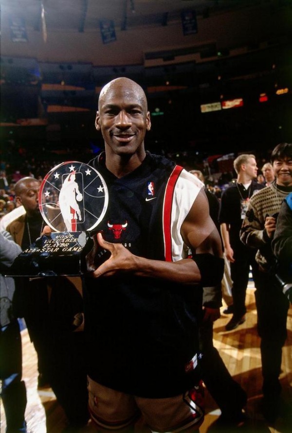 乔丹在全明星赛中有7次得分不低于20分。1993年,他24投10中砍下30分。乔丹那晚的出场时间延长了36分钟。