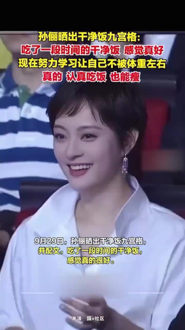 孙俪在社交平台分享“干净饭”九宫格,透露已坚持一段时间,收获颇丰。她写道,认真吃饭后身心舒畅,学会了不执着于体重秤上的数字,而是更身体的真实感受。“脂肪和肌肉都重要,”她强调,“事实证明,好好吃饭,真的能健康地瘦下来。”