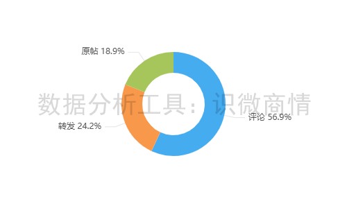 该段时间内,有关“张兰汪小菲短视频账号被封”的舆情信息以评论为主,占56.9%;其次为转发,占24.2%;原帖较少,占18.9%。