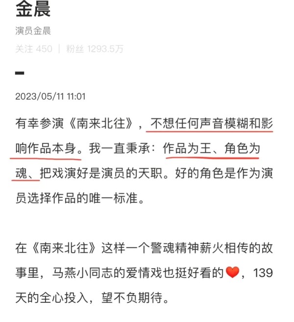 惹得她只好公开发文,不在意番位,只在意角色。