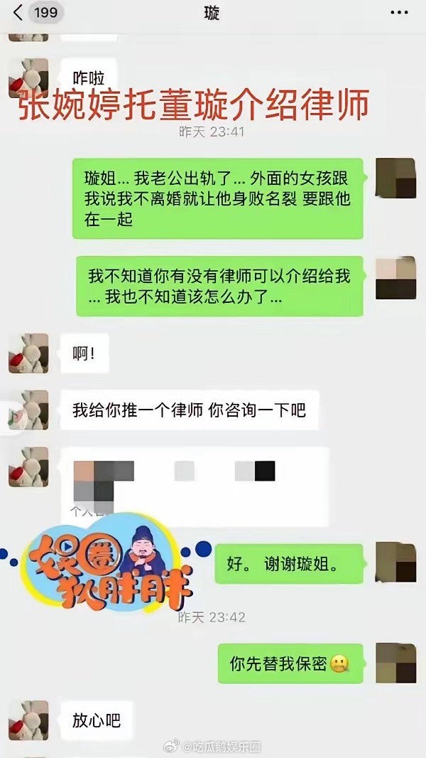 张婉婷被曝曾介入高云翔董璇婚姻?如果是真的,她是真把董璇当傻子啊!还第一时间求助董璇问离婚律师,看聊天记录她俩也不是很熟。一开始大家都觉得她还和董有联系,觉得她不会这么没底线。只能大家低估npd的恐怖了,她可能觉得她没有破坏人家的家庭,反而觉得自己伟大、讲义气呢,自然有脸跟董做朋友 。董璇的朋友目前看起来就佟丽娅没背刺她,其他都是点啥人啊