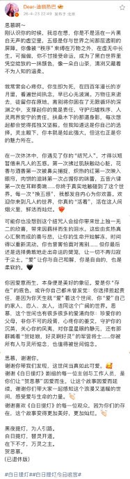 迪丽热巴发长文告别《白日提灯》贺思慕角色