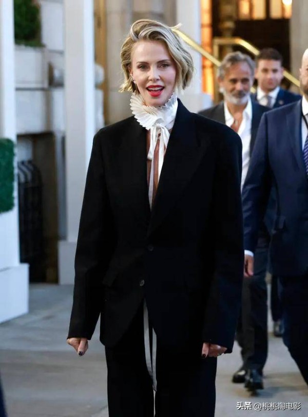 真空上阵走红毯:查理兹·塞隆这一身西装,美得有点狠!