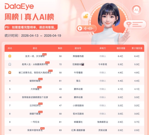 大剧齐聚春节档,观众时间更充裕,是造成这一落差的直接原因。但也不难看出,AI短剧的发力确实对真人短剧形成了分流,连后者的头部项目都受到了波及。