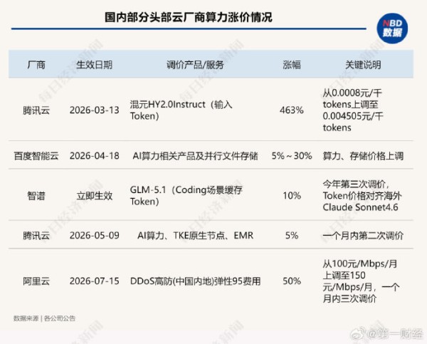 然而,利好之下也有利空。国内头部云厂商算力价格不断上涨,给用户带来了成本压力。