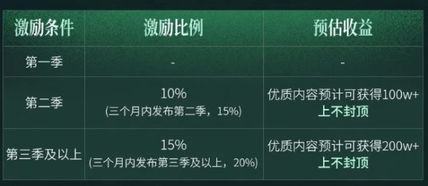 三是面向真人系列剧激励,按季激励,上不封顶。经平台审核属于系列剧,针对不同季内容对应激励比例,在自然免费模式的原分账基础上进行额外激励,激励周期为90天,每月随平台结算周期下发活动专项激励。三大激励活动均从4月15日起正式生效。